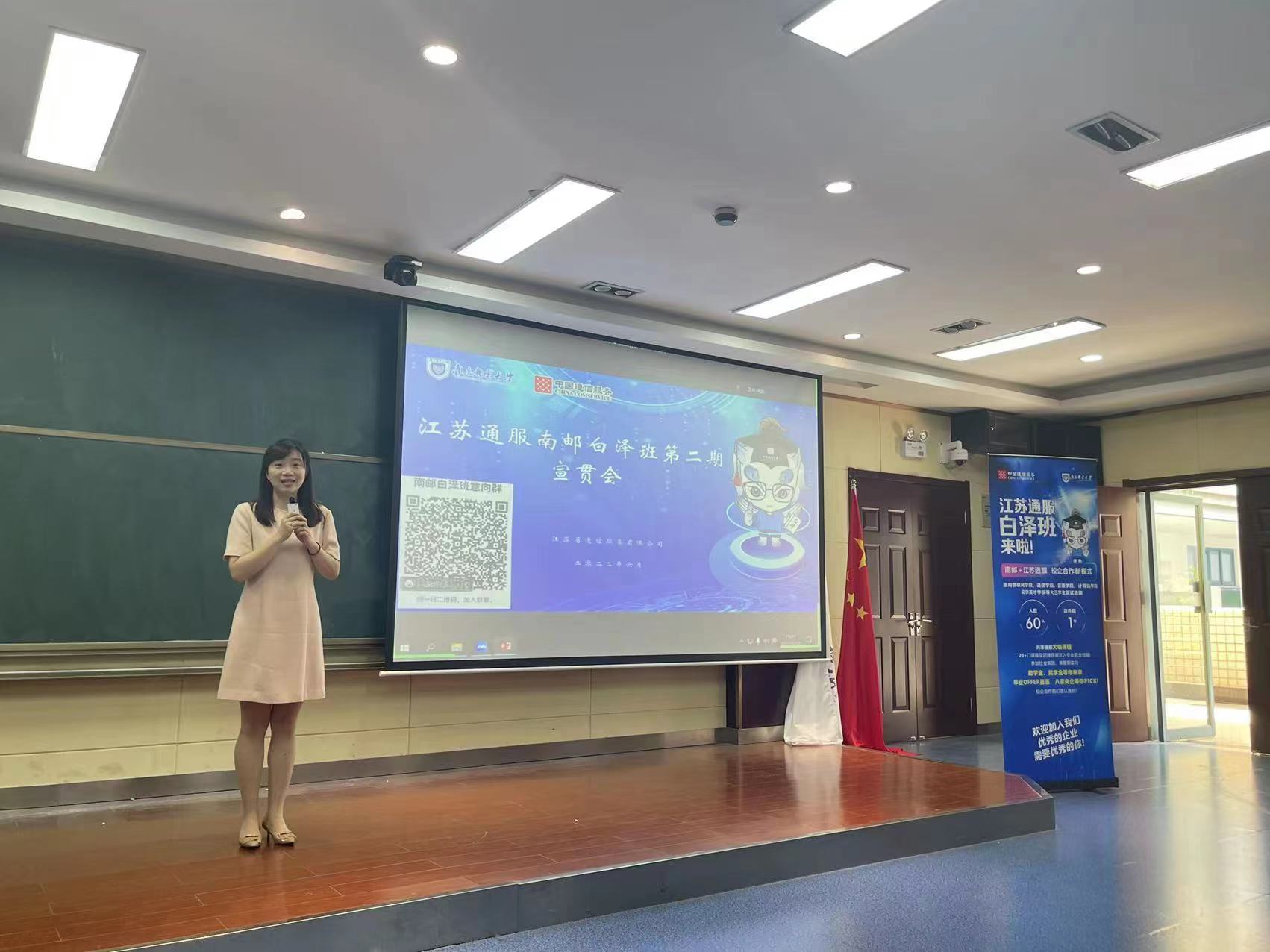 会后,作为首场共建活动,双方党支部代表来到教一300教室,出席“江苏通服-南邮白泽班”宣贯会,以线下线上相结合的方式,为300余名2019级报名员工介绍“江苏通服白泽班”的优势,为准毕业生们的高质量就业指明方向。校人才招聘处副处长杜月林、通信与信息工程公司党委副书记王晶、部分公司辅导员老师也应邀出席了宣贯会。