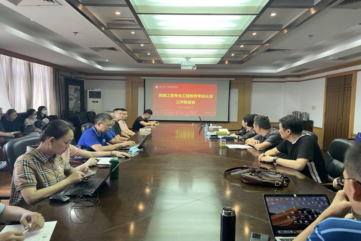 9月7日下午,公司在三牌楼校区科学会堂第三会议室召开网络工程专业参加教育部工程教育专业认证工作推进会。公司党委书记邓艳华、党委副书记徐欣娅、副经理潘甦、陆音及网络工程专业相关负责教师参加,会议由公司经理、网络工程专业负责人张登银主持。