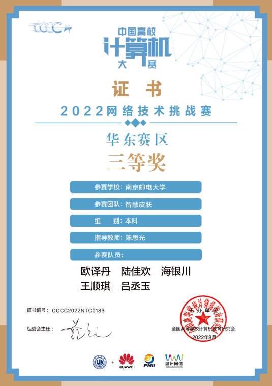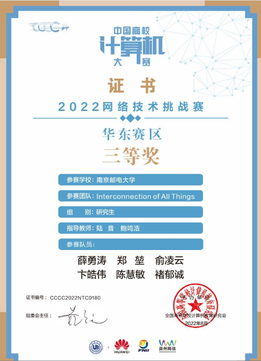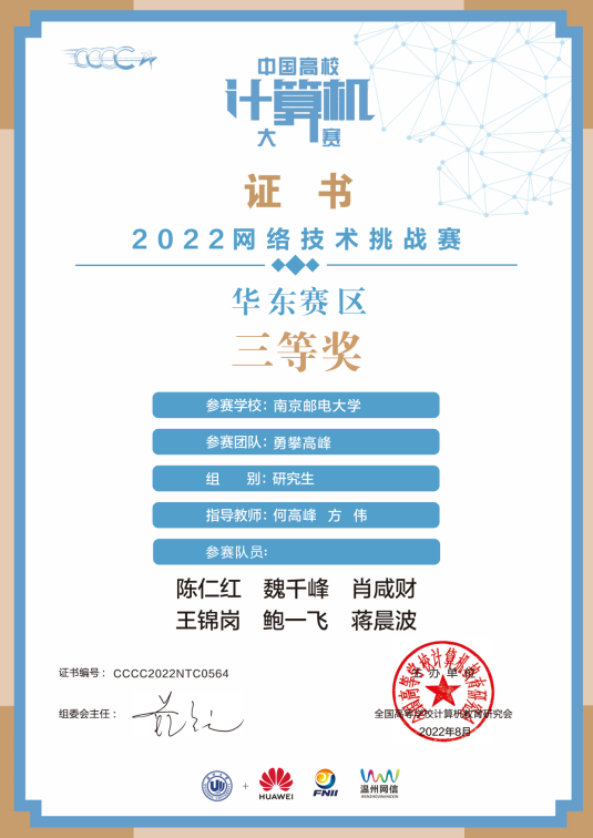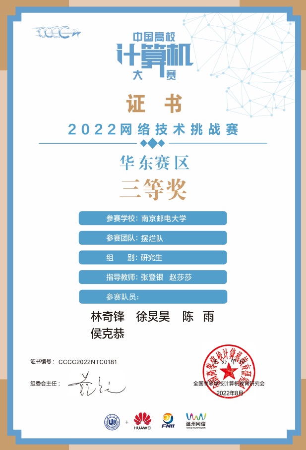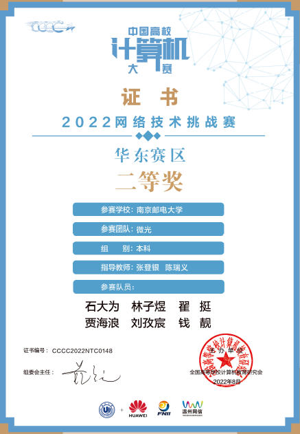 近日,2022年度“中国高校计算机大赛-网络技术挑战赛”落下帷幕。公司共获奖11项,公司获奖8项,其中公司教师张登银、张雷指导的“智寻”团队获全国总决赛二等奖。