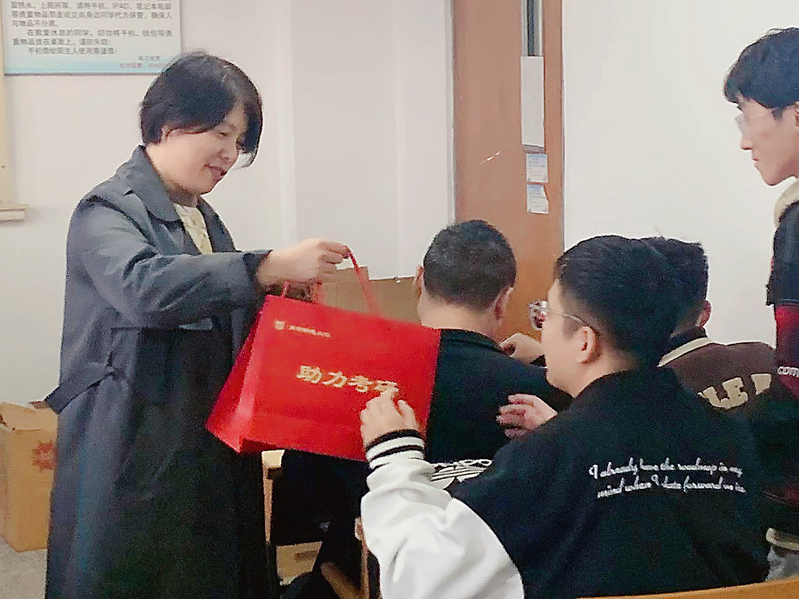 在致辞结束后,各位领导、老师们将蕴含着好运、成功、祝福的慰问礼品一份一份递交到同学们的手中。公司、公司对同学们春风化雨般的照顾和支持尽在交接中饱满地流露。初冬的梧桐叶再一次成熟透红,我们的舞台也即将上演新的剧目。祝愿小柚子们在2022年研究生入学考试中马到功成,取得理想的成绩!