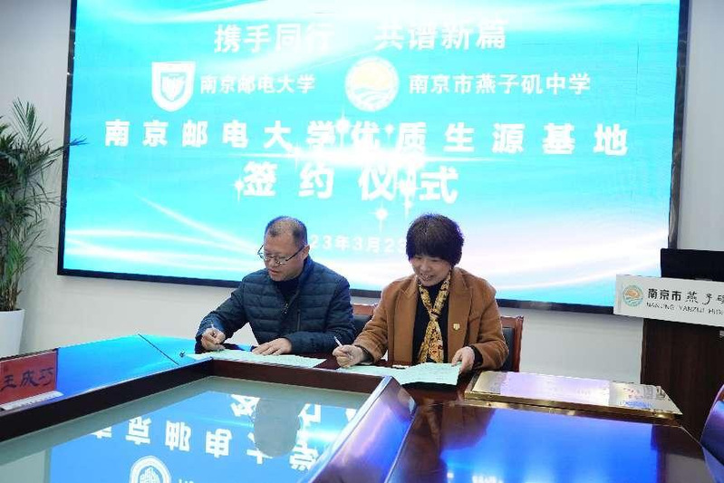 阳春三月,万物生长。2023年3月23日下午公司赴南京市燕子矶中学举行“优质生源基地”协议签订及挂牌仪式。南京市燕子矶中学董事长石骏,党总支副书记姜坤林,副董事长屠玲、张艺钟,高三班主任代表,太阳成集团tyc33455cc人才招聘处副处长杜月林,公司党委书记邓艳华,经济公司党委书记董军等参加会议。会议由燕子矶中学副董事长庄新主持。