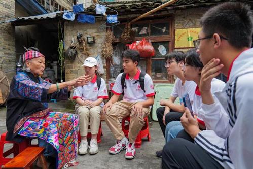 潘玉珍的女儿张艳梅被聘请为中小学苗族非遗传承教育指导老师,多年来一直进行着中小学非遗教材编写、染织教学等工作。“作为苗绣传承人,我很乐意进行传统文化教育工作,也希望能有更多的孩子愿意加入苗绣传承的队伍中来。”张艳梅女士自豪地告诉队员。师生在学习旅程中,切实感受到了苗绣的独特民族魅力与文化意义,为传统手艺人的执着、坚守而感动,进一步体会到苗绣的是民族的,更是世界的。