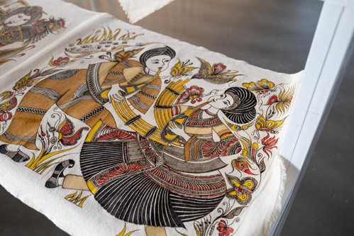 “苗族人绣的都是故事,苗族文化是财富,是宝贝。”潘玉珍热情地向团队成员展示了部分苗绣作品。精美纹样背后的故事随讲解缓缓展开,纪录着苗族文化独特的神话传说,传承苗族人民的世界观与智慧。潘玉珍多次受邀将向世界展示苗绣,曾前往新加坡、美国、英国……她不断将苗绣传统文化带上世界舞台。