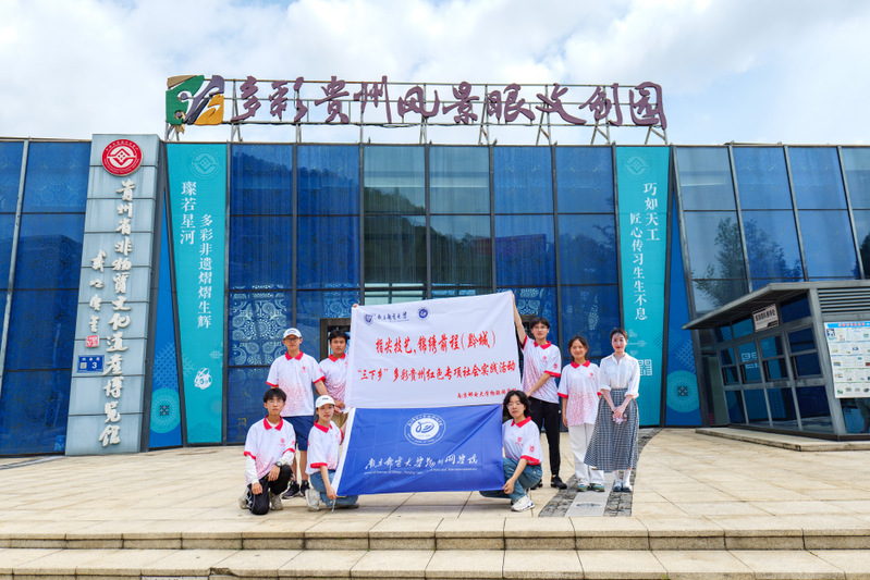 在指导教师吴孙玉笑、队长钱昊成的带领下,团队成员走进苗绣展示厅贵州省非物质文化遗产博览馆,参观学习传统苗绣制成的民族服装以及应用于苗族的日常生活用具。据苗绣历代传承人介绍,苗绣是苗族历史上代代传承的刺绣技艺,苗绣纹样种类繁多,具有深厚的民族文化积淀,但也存在传统苗绣传承、传播困难等问题。近年来,随着互联网兴起,传统文创产业与现代网络科技相融合,对苗绣产业赋能、对乡村振兴发展、对苗绣文化传承具有积极作用。队员们深刻认识到,要将传统文化传承好,需要将传统元素生活化,以适应现代人的价值导向。要利用所学专业技术传承发扬苗绣文化,取得创新性发展进步,丰富中华文化内涵,增强民族自信与文化认同。