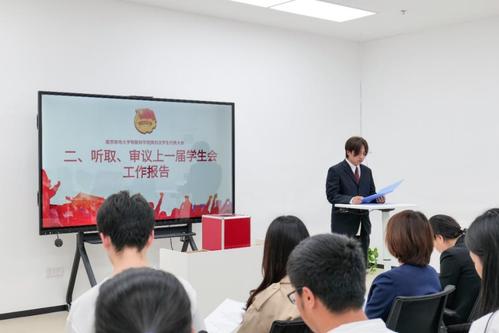 院员工会主席团候选人陈丁丁以《踔厉奋发、勇毅前行,怀揣梦想,扬帆起航》为题向大会做工作报告。报告回顾了过去一年员工会在加强组织建设、服务员工发展、丰富校园文化生活等方面开展的各项工作,总结经验、反思不足,并从加强思想建设、能力培养、丰富学术生活等三个方面明确了今后的工作目标与任务。