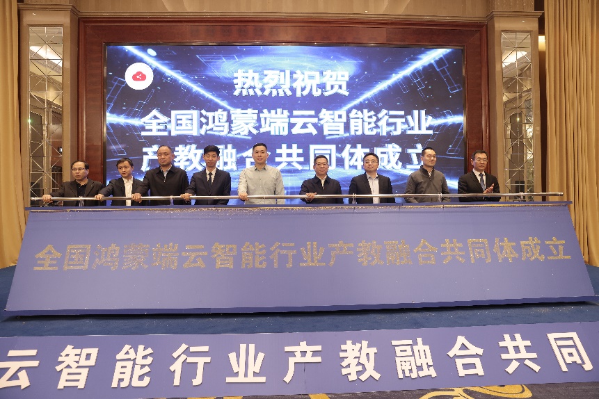 全国鸿蒙端云智能行业产教融合共同体由工业和信息化部教育与考试中心指导,华为云计算技术有限公司、贵州大学、山东科技职业公司共同牵头,联合250余家行业龙头企业、普通高校、职业院校、科研机构、行业协会和上下游企业,本着“共商、共建、共育、共享、共赢”原则共同发起建设。