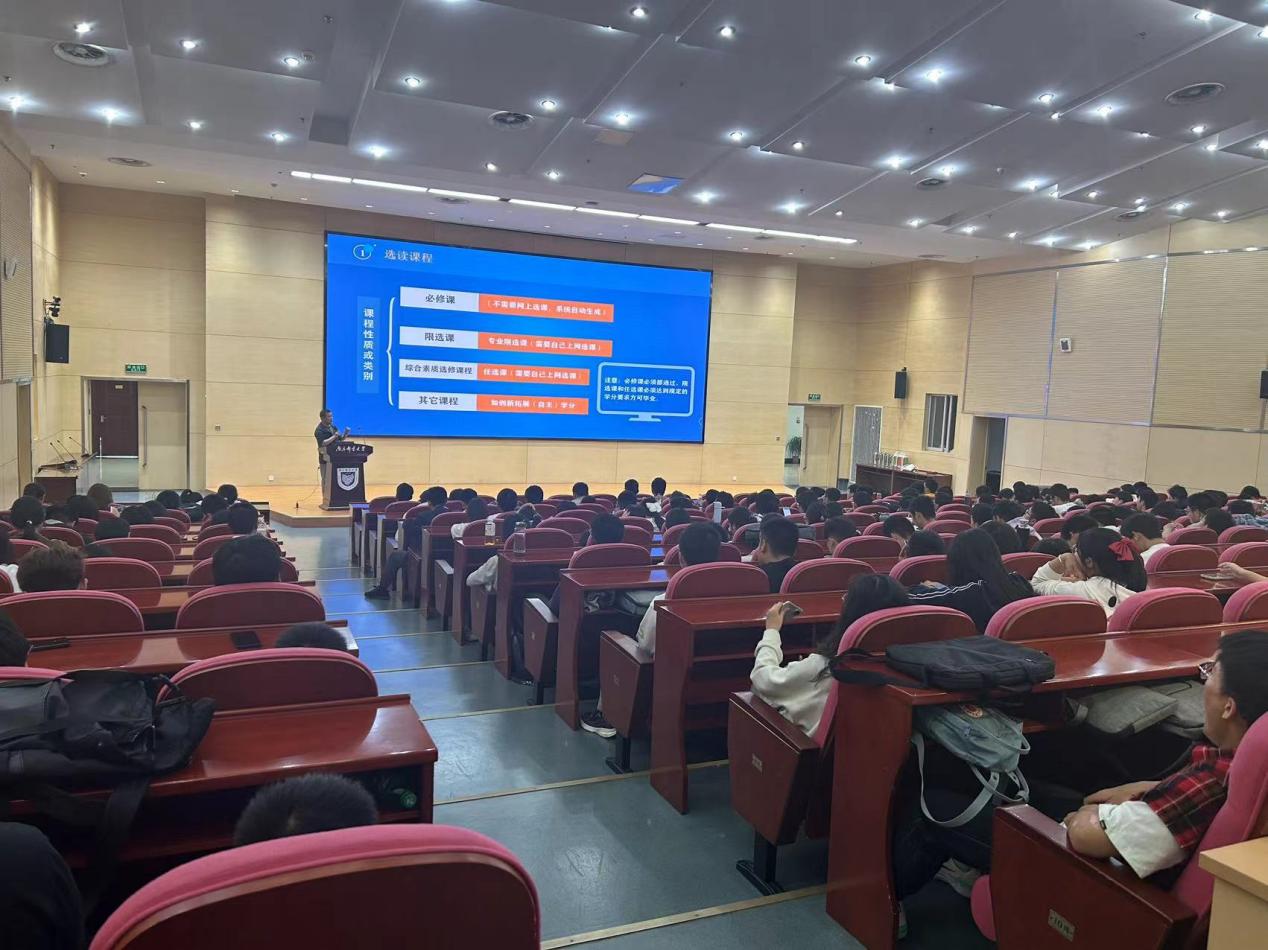 2023年10月27日下午,公司在图书馆四楼报告厅召开了2023级新生学籍政策宣讲专题讲座,讲座邀请了教务处综合管理科林亚老师主讲,2023级全体新生参加,2023级辅导员于光绪老师主持。