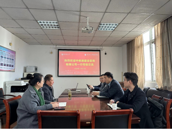 11月21日上午,中邮通建设咨询有限公司副总经理林珂一行来公司交流校企合作事宜。经理张登银,物联网工程系主任赵莎莎在公司311会议室进行了接待并座谈交流。