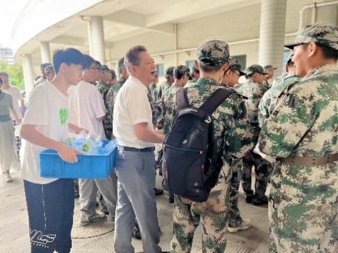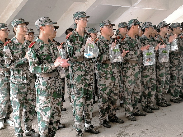 公司领导和老师们为每一位同学发放了军训慰问品,小小纸袋中的温情为同学带来了一份鼓舞,一份欢喜。