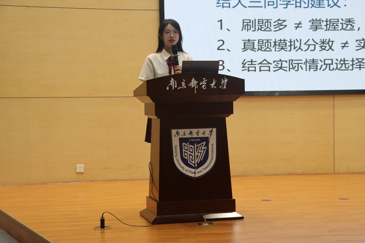 为帮助同学们认清考研形势,激发考研斗志,明晰发展路径,6月28日,公司于仙林校区图书馆四楼报告厅召开2020级本科生考研动员大会。会议邀请了公司经理张登银、公司党委副书记徐欣娅、校研招办主任王霁、公司网络工程系主任亓晋以及2023届优秀毕业生何天逸和仲嘉同学,2020级全体同学参加会议,会议由辅导员赵珂主持。