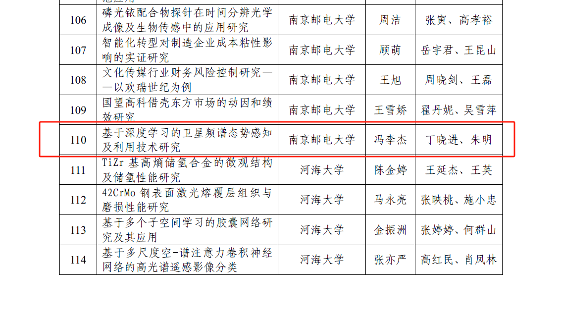 2024年1月4日,江苏省学位委员会、江苏省教育厅公布了2023年江苏省优秀博士硕士学位论文评选结果。由丁晓进老师指导,公司2022届硕士毕业生冯李杰的论文《基于深度学习的卫星频谱态势感知及利用技术研究》获评2023年江苏省优秀专业学位硕士学位论文。