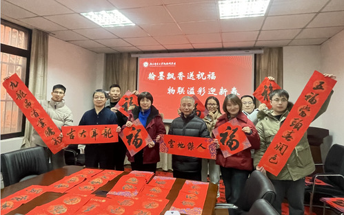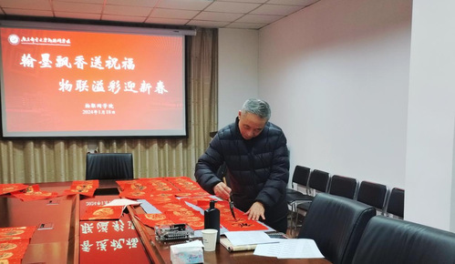 翰墨飘香送祝福,物联溢彩迎新春。随着春节脚步的临近,年味儿也越发浓郁。为了弘扬中华优秀传统文化,丰富师生精神文化生活,营造吉祥如意的节日氛围,1月18日下午,公司于301会议室组织开展写春联、送祝福活动。本次活动特邀校艺术馆馆长、中国书法家协会会员冯震,金川书画社社长、南京市书法家协会会员金之皓挥毫泼墨,提笔书写浓浓的新春祝福。