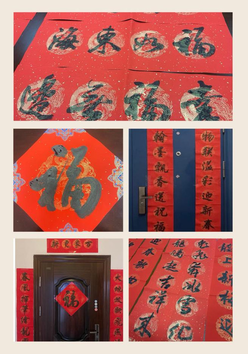 活动现场,冯老师和金老师饱蘸浓墨,倾情书写,随着笔锋或抑或扬,一幅幅寓意吉祥的的春联、一个个饱含神韵的“福”字在行云流水间纷纷呈现。“大地放歌飞燕语,春风挥笔绘龙图”“龙腾盛世春添色,凤舞中华福拜年”......一个个苍劲有力的毛笔字跃然纸上,不仅传递了对公司全体师生的新春祝福,更寄托了对公司未来发展的美好期许。喜气洋洋、红红火火的春联萦绕在整个活动现场,让大家感受到浓浓的年味儿和暖暖的人情味儿。院研会、党支部的同学们也开心地忙碌在书法家身边,把写好的春联整齐摆放在地上晾干,等春联的墨迹干透后,再小心翼翼地张贴在办公室和研究生工作室大门上。