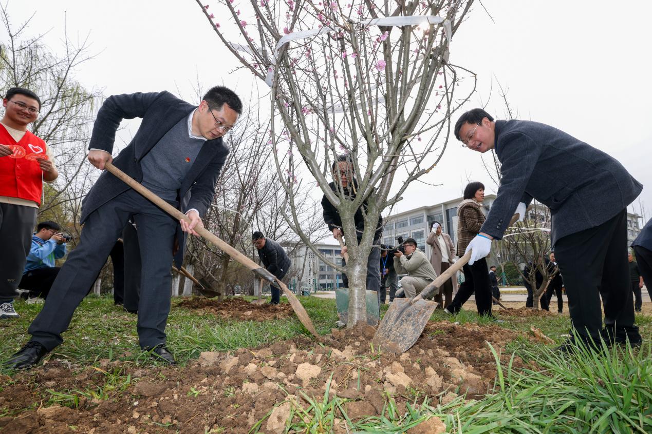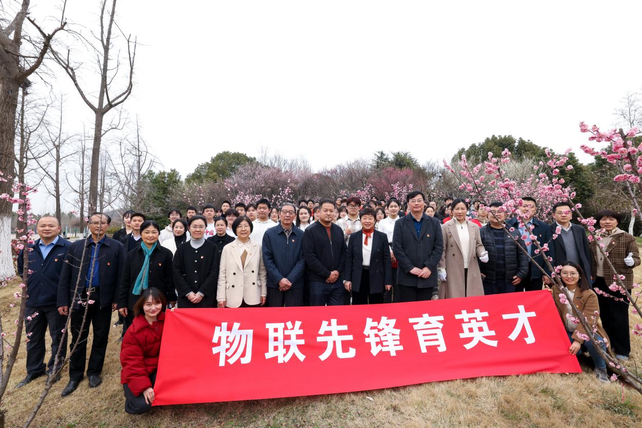 又是一年春好处,南邮师生相约再续“红梅情”,传承“基因红”。3月13日,太阳成集团tyc33455cc开展“物联先锋育英才,党旗红梅耀未来”主题党日活动,在“红梅岭”栽种16棵红梅,师生党员共植“党员先锋林”。全国人大代表、董事长叶美兰,公司党委常委、副董事长姜小舜,公司党委常委、副董事长谢平,公司党委常委、副董事长周亮,员工代表、宣传部、教师工作部、员工工作部、研究生工作部、对外联络处、后勤管理处、校关工委等部门负责人、公司领导、各党支部书记、师生党员代表共同参加了此次活动。