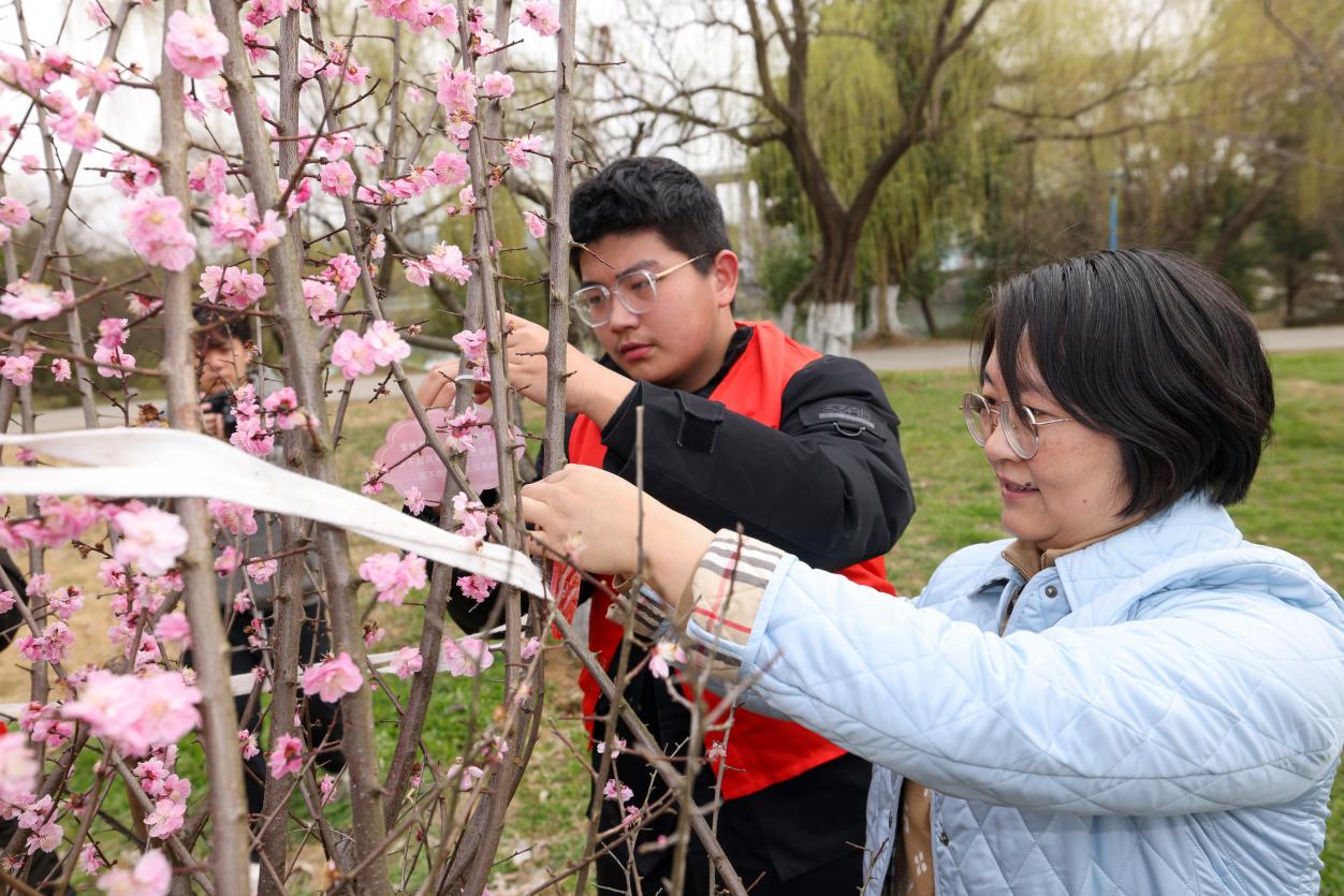 “春风得意正少年,我上春山与你来相见……”伴随着深情且激昂的合唱歌声,校领导和老师们一起带领同学挥锹扬锄、扶苗提树、培实新土,共同为红梅树系上刻有励志寄语的红色标识牌。校关工委副主任马名骞老师向员工们娓娓道来太阳成集团tyc33455cc的红色历史渊源,从1942年诞生于山东抗日根据地的八路军战邮干训班,发展至今82年来情系国脉,硕果累累,师生们把希望种在了春天里,也唤醒了刻进骨髓里的“红色基因”。