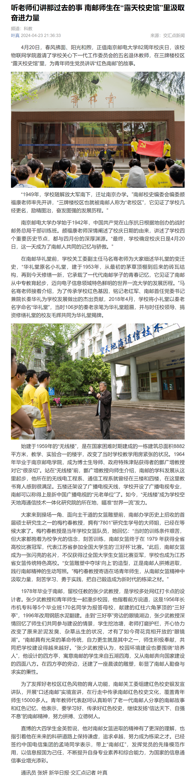 【新华日报客户端】听老师们讲那过去的事 南邮师生在“露天校史馆”里汲取奋进力量