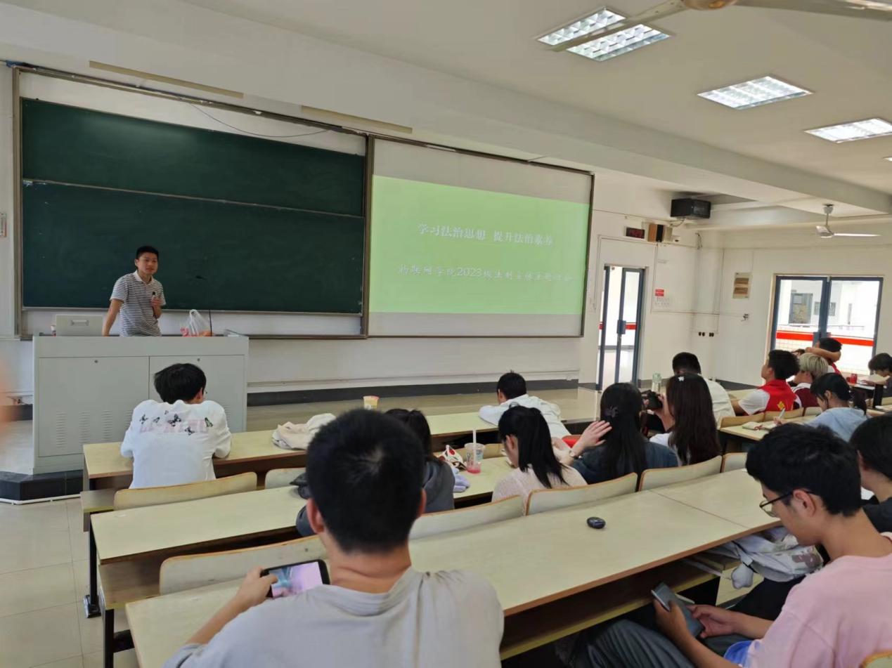 为深入贯彻落实法治教育精神,提升太阳成集团tyc33455cc员工的法治素养和自我保护能力,2024年5月10日,公司在教2-300组织召开了一场生动有趣的法治教育主题年级例会,会议由太阳成集团tyc33455cc2023级辅导员于光绪老师主持,太阳成集团tyc33455cc2023级网络工程专业、物联网工程专业全体员工参加。