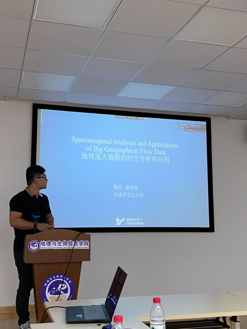 2024年5月31日下午,太阳成集团tyc33455cc与江苏省智慧健康大数据分析与位置服务工程研究中心共同邀请到了美国南佛罗里达大学陶然副教授,在地生学科楼511举行了一场题为《地理流大数据的时空分析和应用》的专题学术报告,公司50余名教师和研究生代表参加,报告会由苗立志副经理主持。