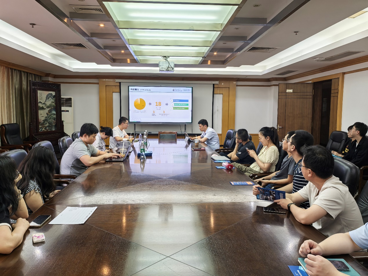 6月21日下午,香港科技大学(广州)的专家团队莅临公司进行学术交流,带来了三场关于作物联网领域的精彩学术报告,还借此契机向在座师生介绍了公司的综合实力,并进行了招生宣传。公司经理助理代海波副教授主持了会议,线上线下五十余名师生参加了此次交流会。