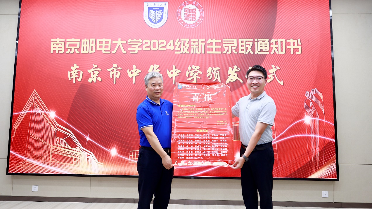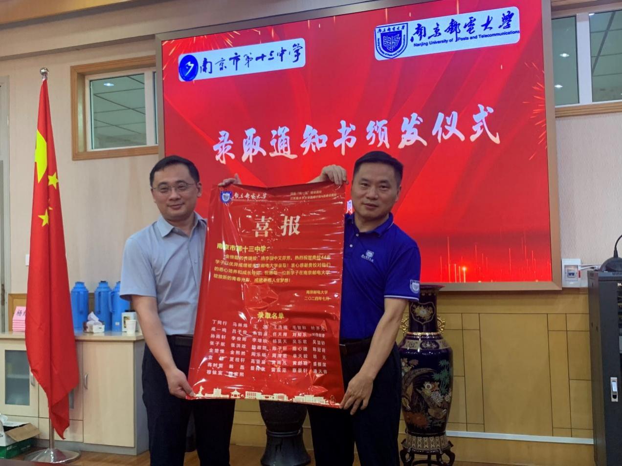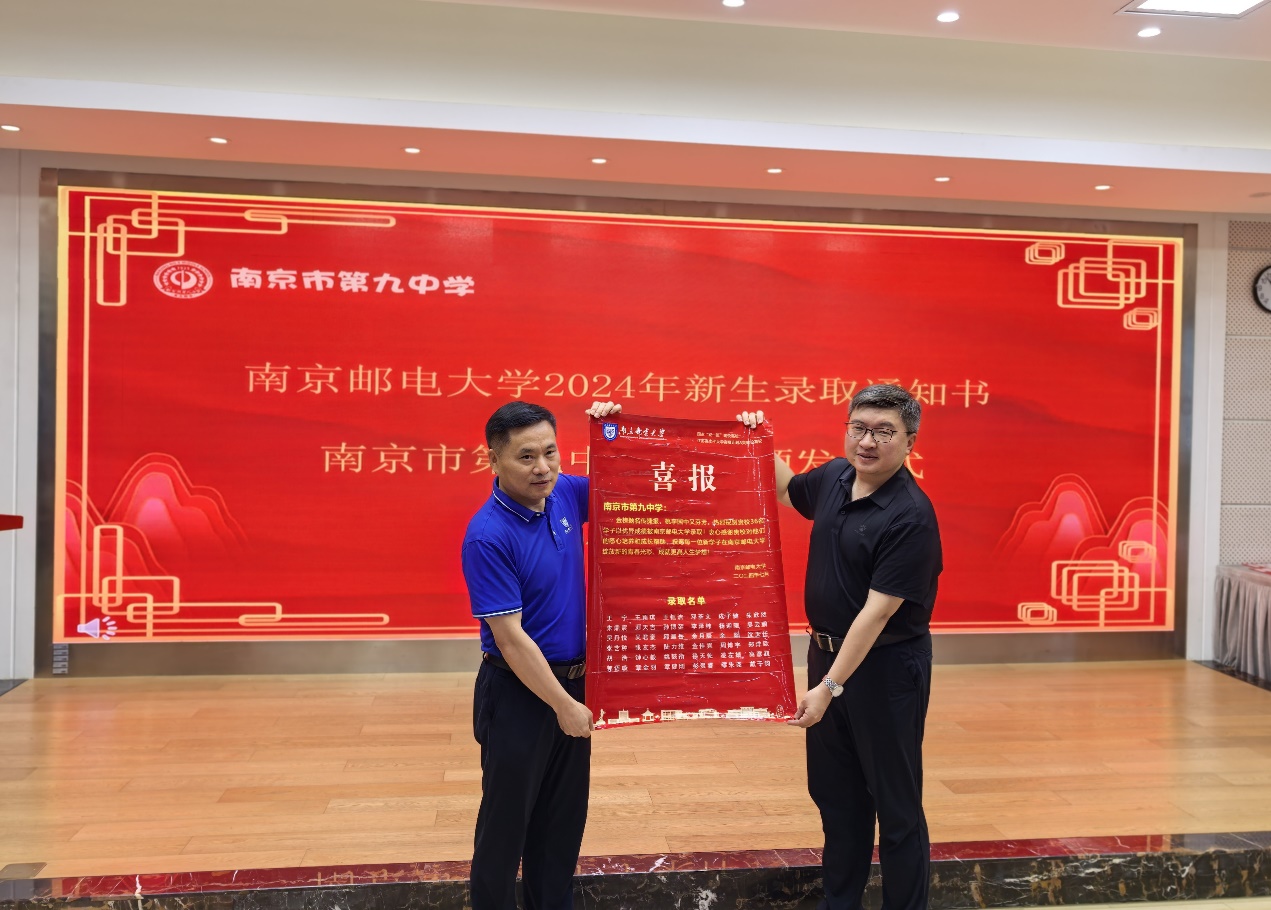 公司党委书记郭宇锋教授、公司党委副书记蒋国平教授率队分别于7月21日、22日先后赴南京市中华中学、第一中学、第二十九中学、金陵中学、第十三中学、第九中学,为今年考取公司的2024级新生颁发录取通知书。各中公司领导、年级主任、录取新生及家长代表、公司人才招聘处、南京招生宣传组相关人员参加了颁发仪式。