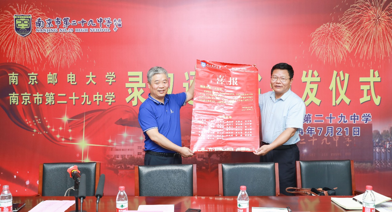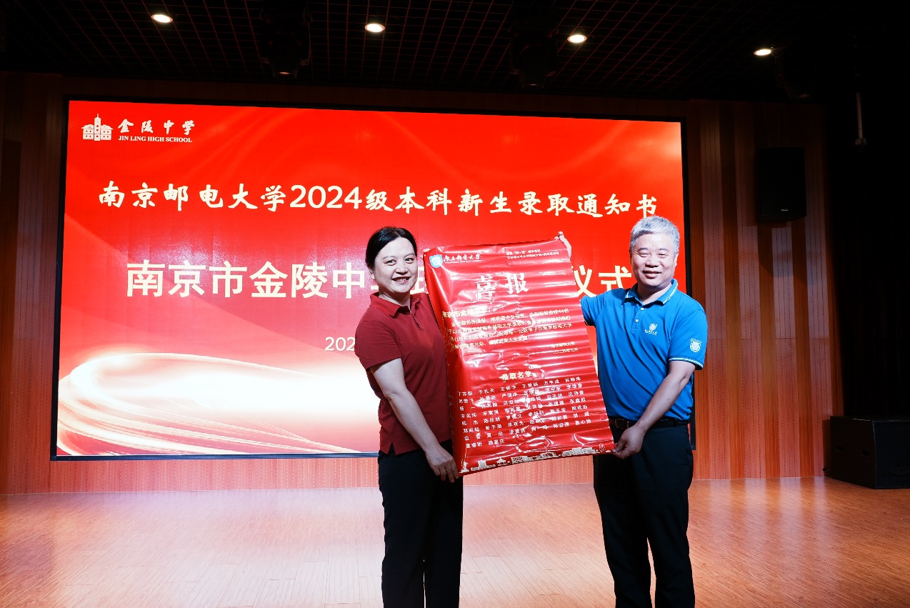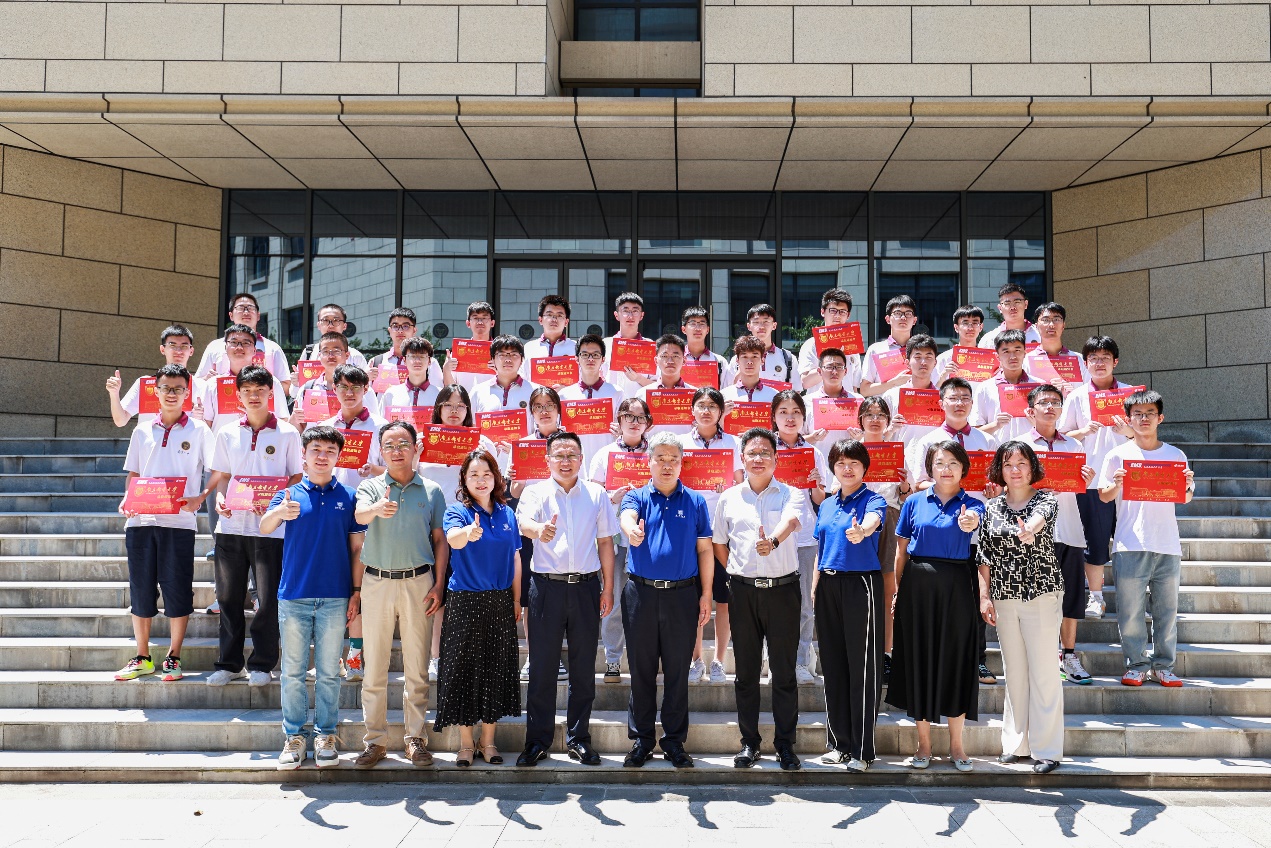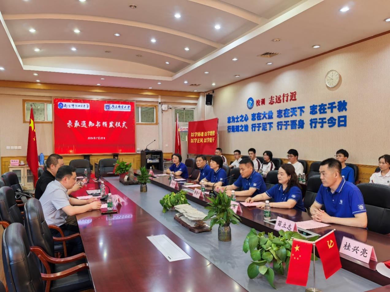 公司党委书记郭宇锋教授、公司党委副书记蒋国平教授率队分别于7月21日、22日先后赴南京市中华中学、第一中学、第二十九中学、金陵中学、第十三中学、第九中学,为今年考取公司的2024级新生颁发录取通知书。各中公司领导、年级主任、录取新生及家长代表、公司人才招聘处、南京招生宣传组相关人员参加了颁发仪式。
