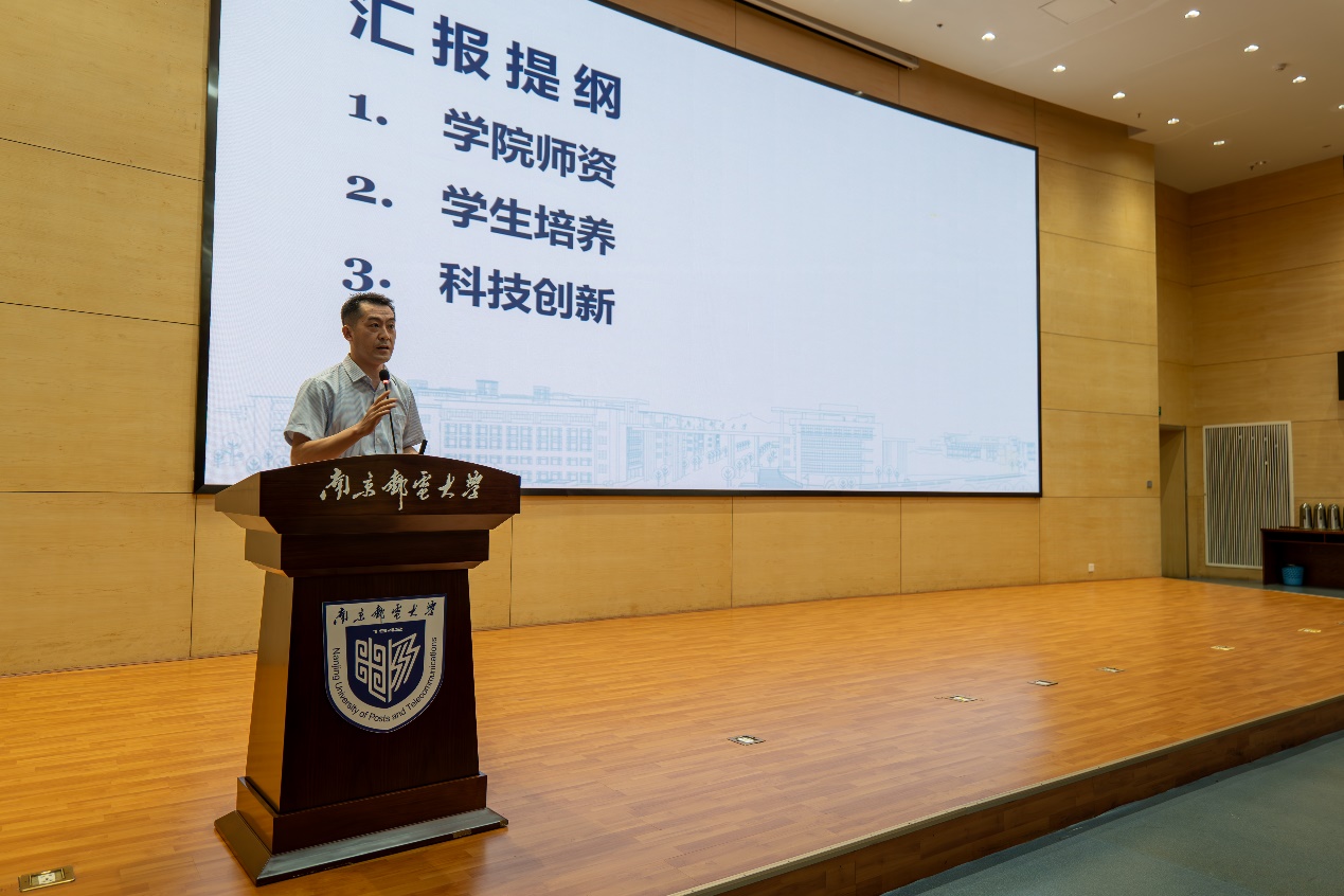 会议伊始,公司党委书记邓艳华老师致辞。她代表公司全体师生向415名本科新生以及50名分段培养新生的到来表示热烈的欢迎,并从“向上生长,仰望星空”“向下扎根,脚踏实地”“向内求索,凝聚智慧”三个方面为同学们该如何度过老员工活指明了方向。她对同学们提出了殷切希望,鼓励同学们秉持“无创新,不南邮”的理念,主动激发更多创新思维和创意的火花,为未来赋能添彩。