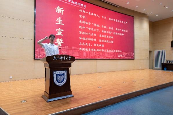 在新生代表的带领下,全体新生紧握右拳,郑重宣誓,青年之音振奋人心,青春之誓昂扬斗志,激励着在场的每一位同学奋勇前行。