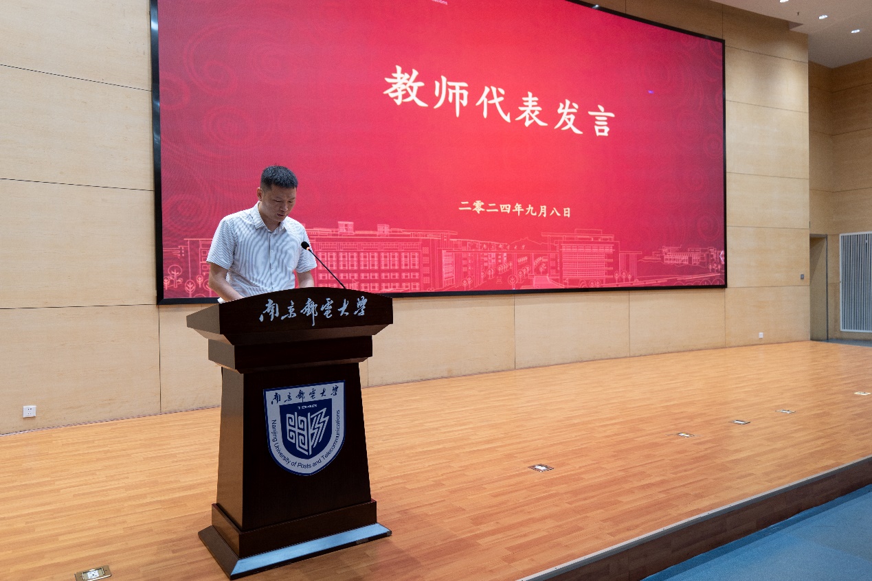 接着,物联网工程系主任代海波老师从充分利用学习资源、培养自主学习能力、参与科研实践项目、提高动手创新能力等方面,为同学们的成长提出宝贵建议。青春是用来奋斗的,他衷心祝愿同学们能积极参与、勇于创新,度过美好而充实的老员工活。