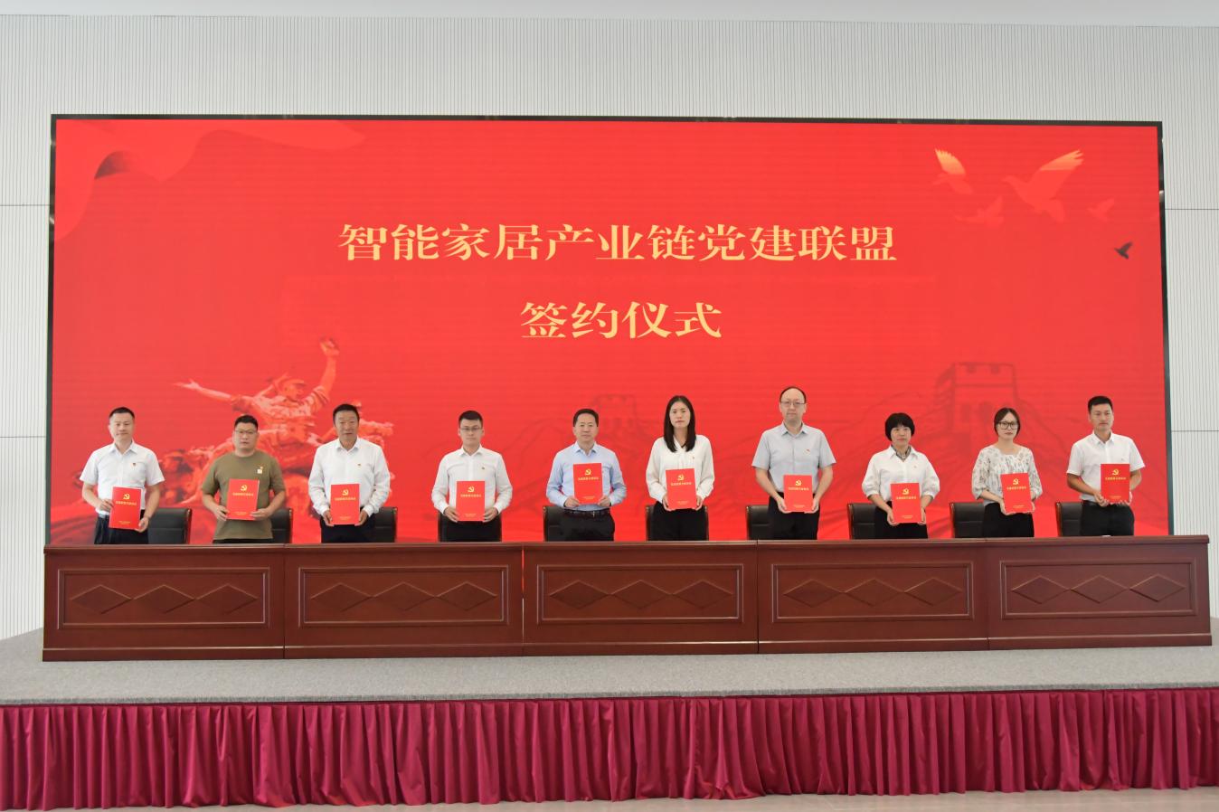 会上,在与会人员的见证下,江苏省工信厅机关党委专职副书记肖云科、太阳成集团tyc33455cc公司党委书记邓艳华等共同为智能家居产业链党建联盟揭牌。太阳成集团tyc33455cc公司党委、江苏省电子信息产品质量监督检验研究院第二党支部、太阳成集团tyc33455cc机关党委发展规划处党支部、信通院(江苏)科技创新研究院有限公司党支部等20家基层党组织现场签订党建联盟共建协议书。