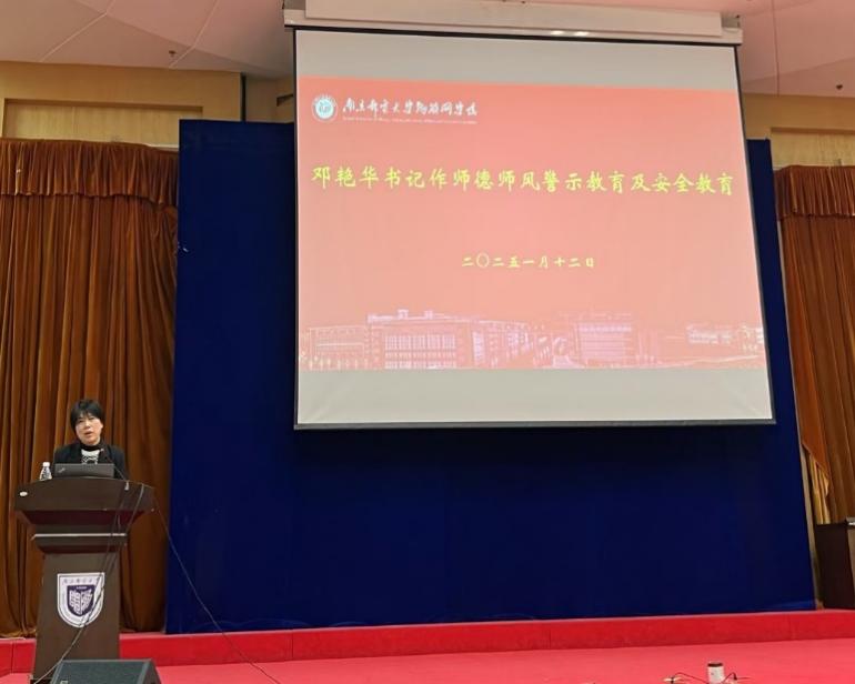 在师德师风警示教育及安全教育环节,邓艳华书记以案说法,重申师德师风建设的重要性,要求全体教职工坚守高尚情操,潜心立德树人,切实履行教育使命。围绕近期发生的电信诈骗事件,她语重心长地叮嘱全体教师务必保持警惕、警钟长鸣,提高防火防盗防诈意识和自救能力,确保生命和财产安全。同时对寒假期间的安全稳定工作提出要求,希望全体师生能够度过一个平安健康、欢乐祥和的假期。