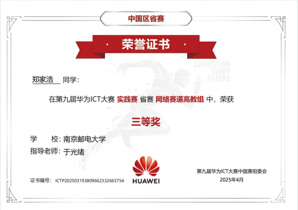 3 | 网络赛道 | 高教组 | 三等奖 | 郑家浩(B23080815) | 于光绪 |