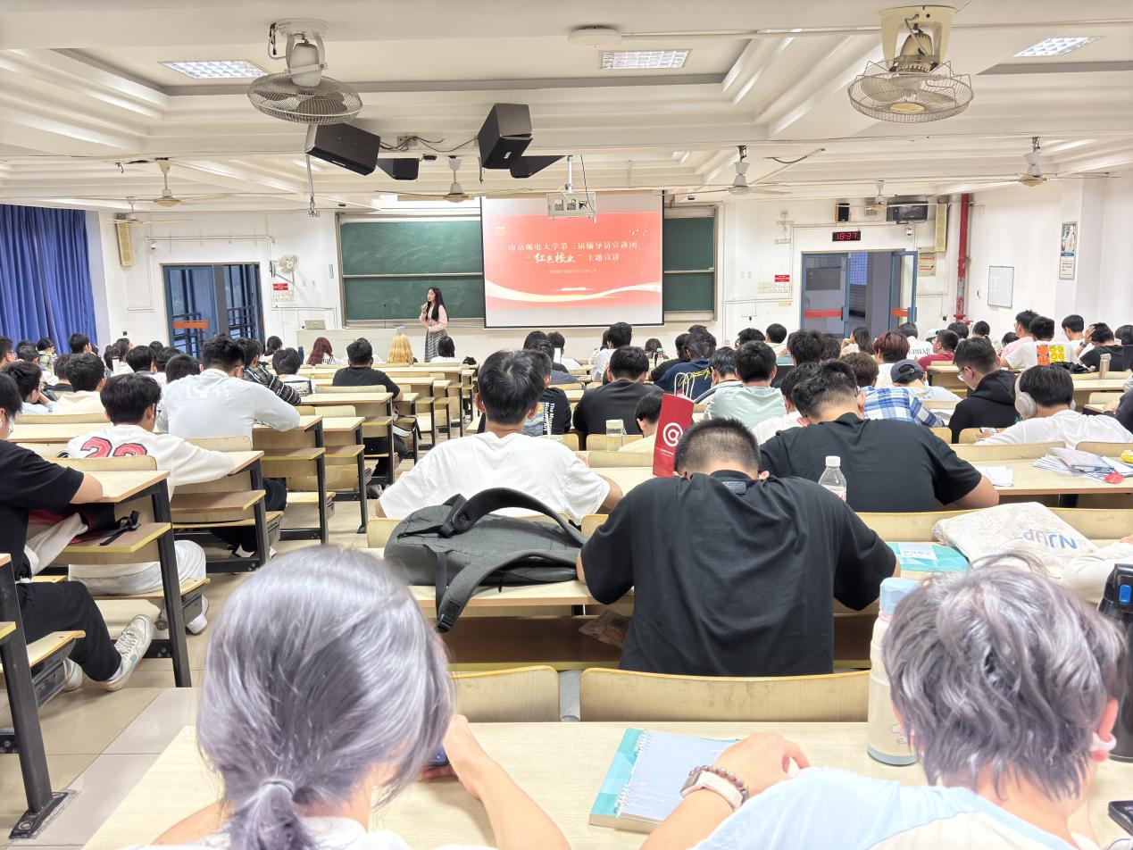 吴老师从“学史铸魂”“南邮发源”“定址南京”“赓续精神”四个部分展开宣讲,旨在让南邮学子们了解过去、理解今天、面向未来。