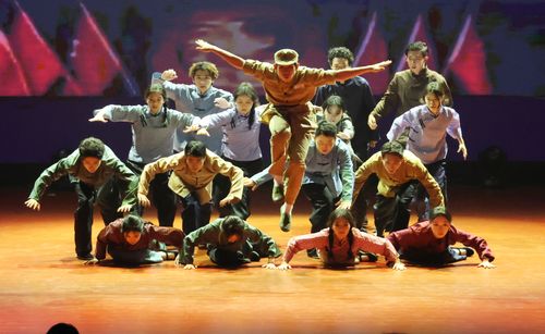 演出过程中,同学们精神抖擞、神情专注,将理想与信念融入青春的律动,将作品所要表达的情感演绎得淋漓尽致,用坚毅果敢的舞步展现出革命先辈们面对困难毫不退缩的信念,生动再现了那段波澜壮阔的峥嵘岁月。