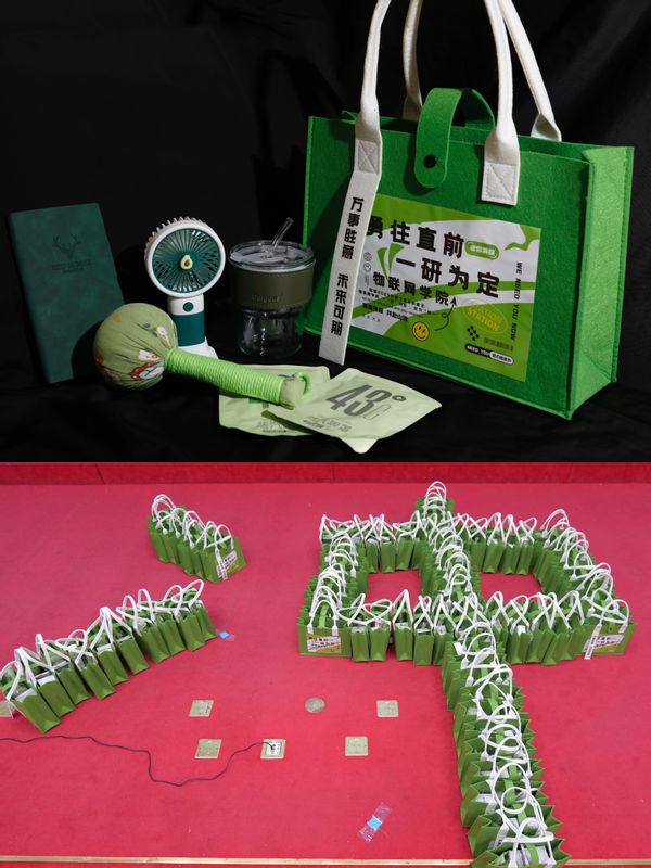 活动最后,公司领导和老师们亲手将精心挑选的考研大礼包送到在场每一位考研学子手中。印有“万事胜意,未来可期”的毛毡包内,整齐摆放着绿色竹节杯、小电风扇、笔记本、艾草锤和蒸汽眼罩。竹节杯寓意“一路绿灯,节节高升”;小电风扇则被吴孙玉笑老师赋予特别意义——“卷起来”不是和别人卷,而是专注自我提升,和自己卷。这些满含心意的礼品让在场学子倍感温暖,深受鼓舞,同学们纷纷表示会在接下来的复习备考中坚持不懈,迎难而上,以积极的心态迎接未来的每一个挑战,全力以赴追求考研梦想,力求以优异的成绩回馈公司的悉心栽培与老师们的关心鼓励。