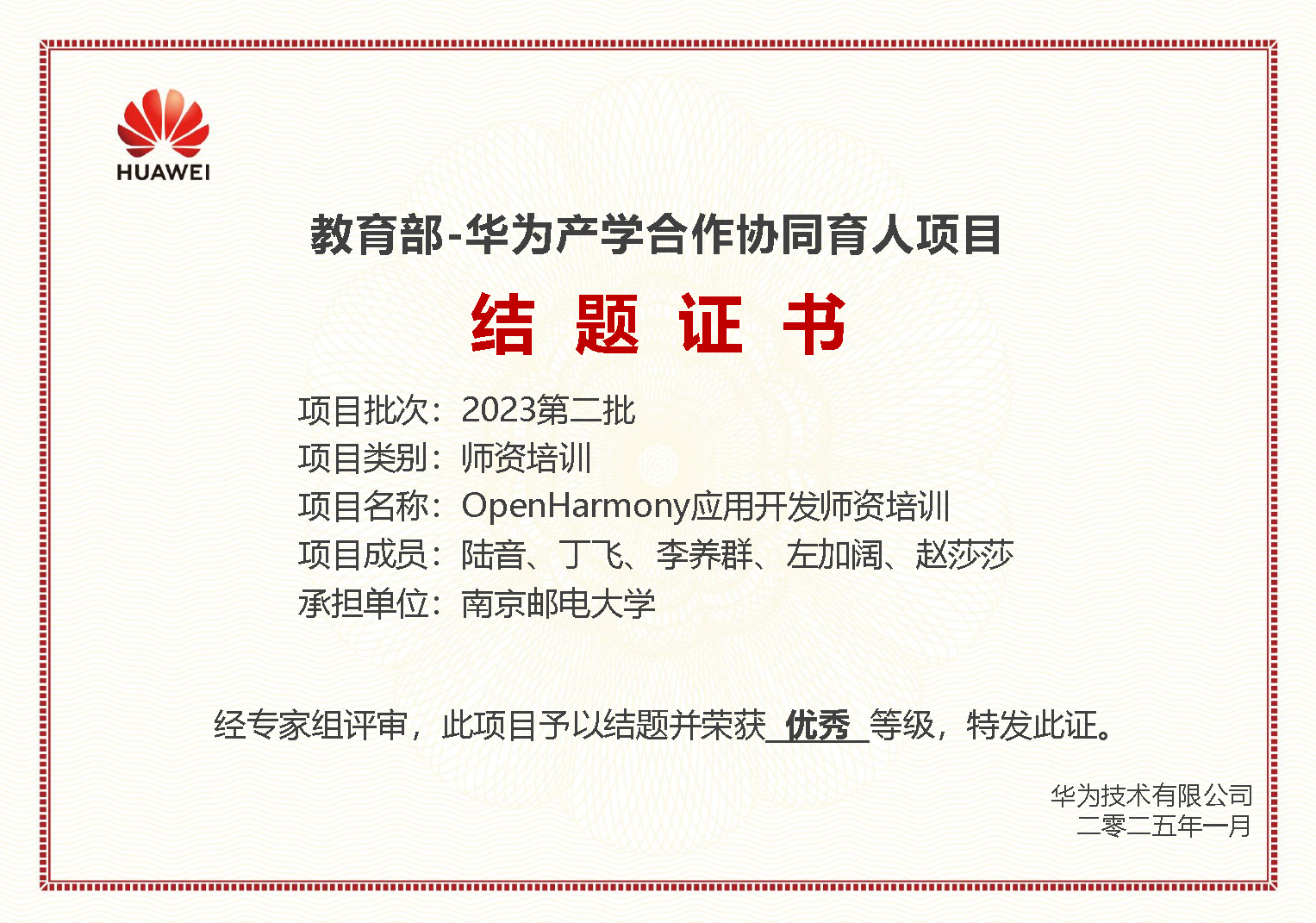 “教育部-华为产学合作协同育人项目”优秀结题证书